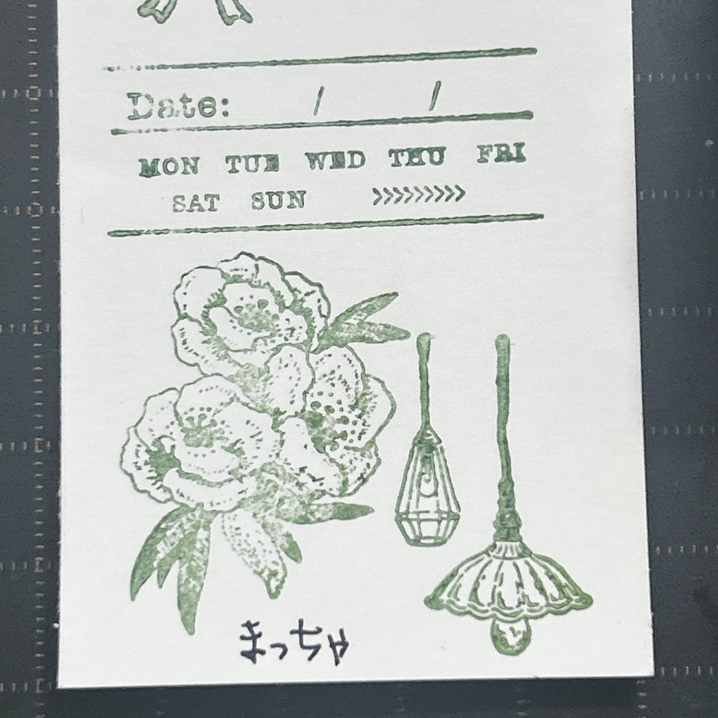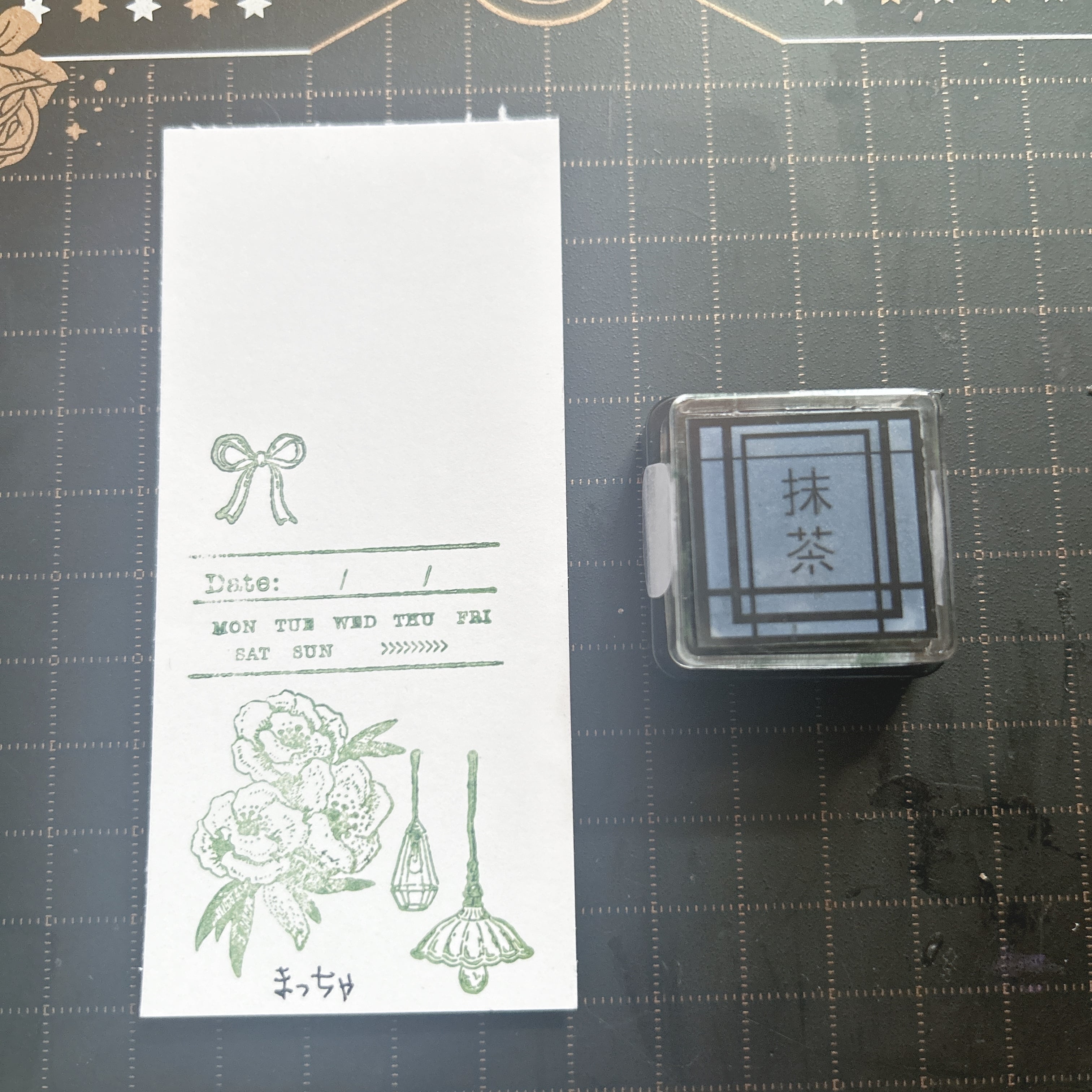 心惹かれるクラシカルな抹茶色のハンコのスタンプパッドで、上品な印象をプラスしましょう!